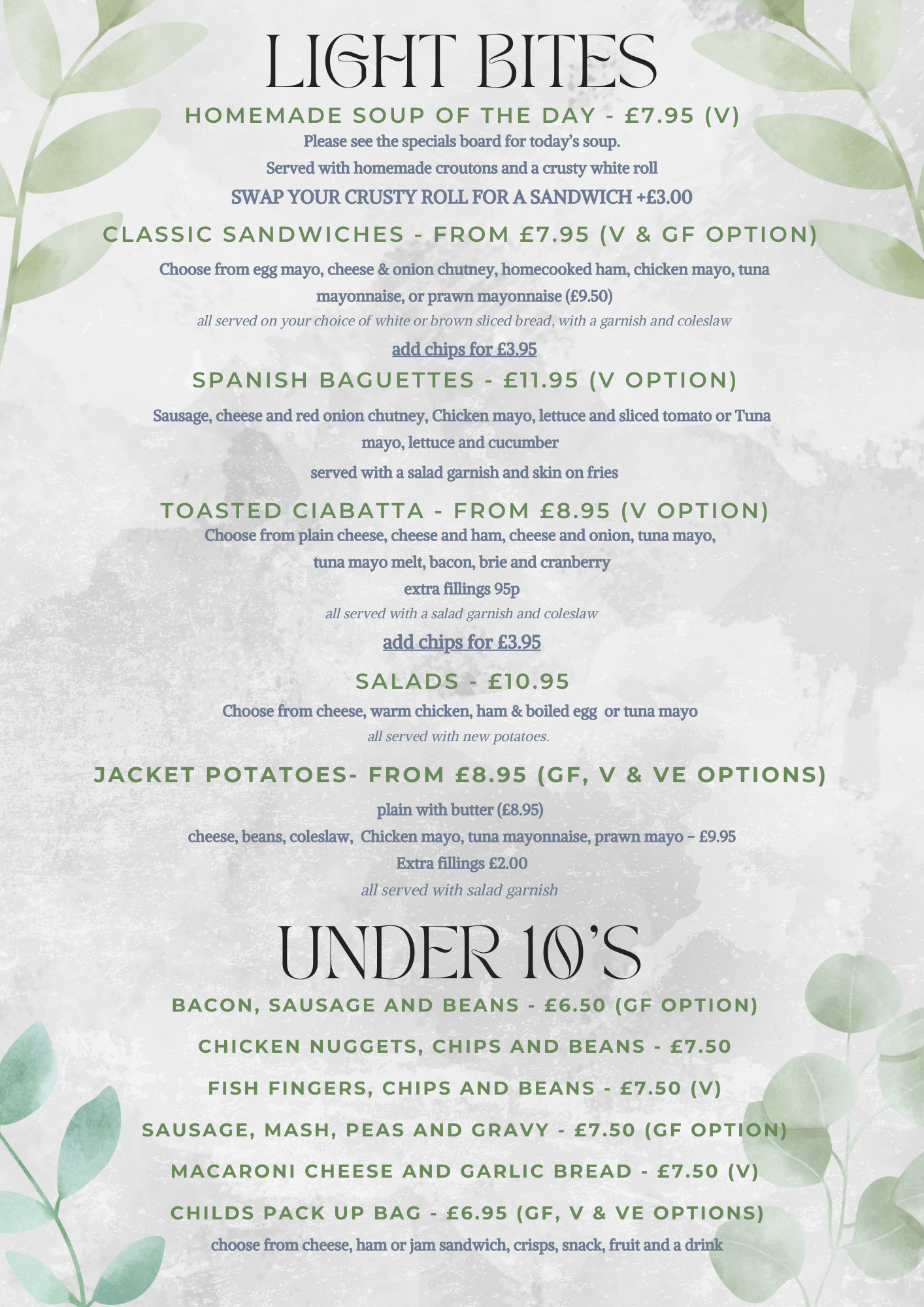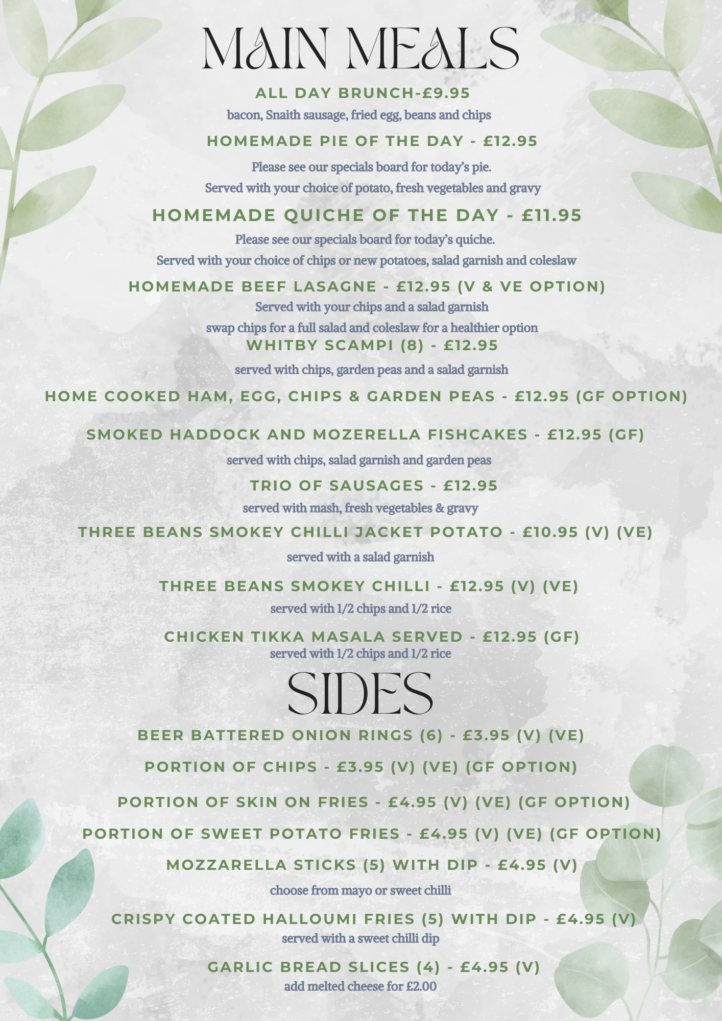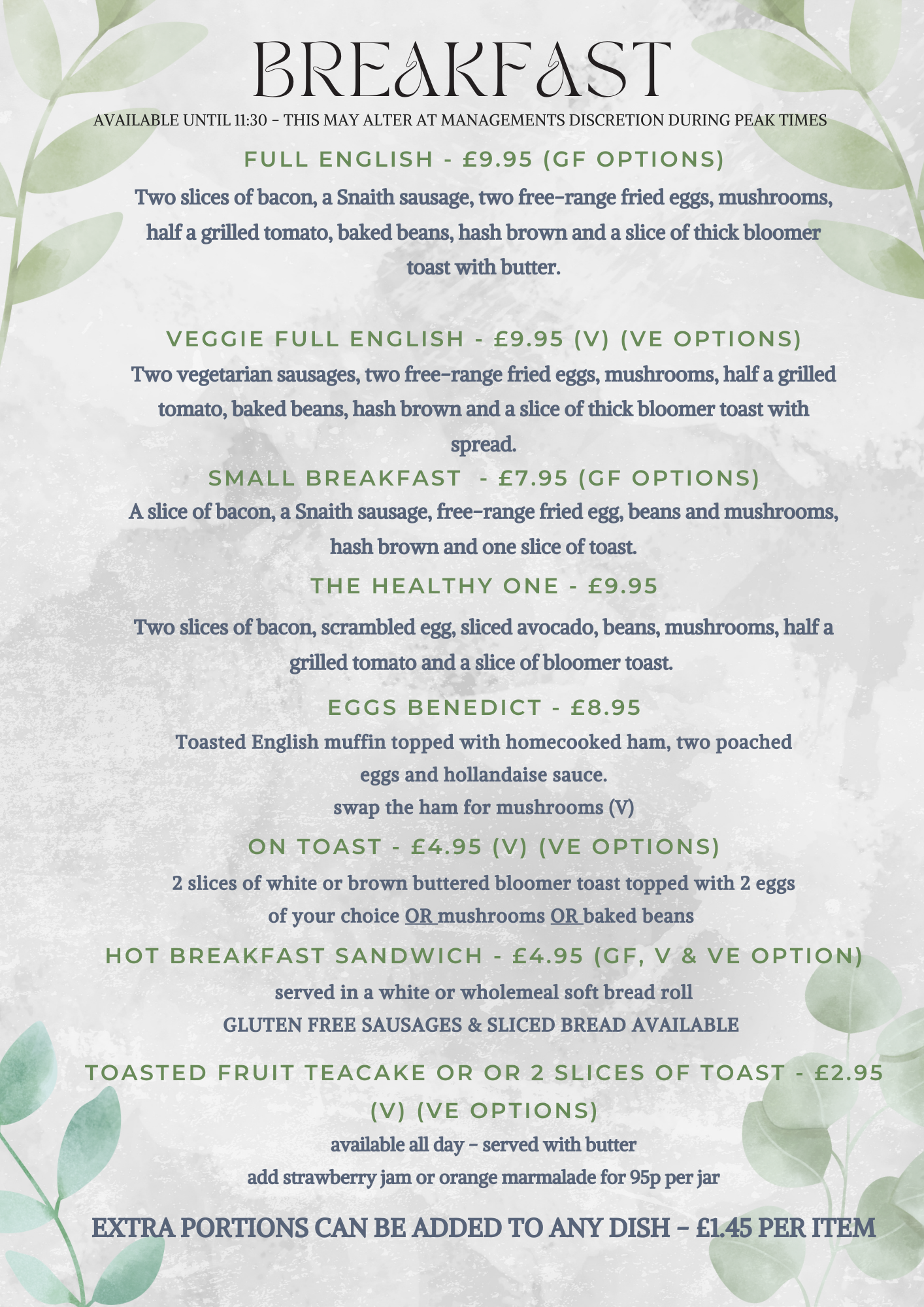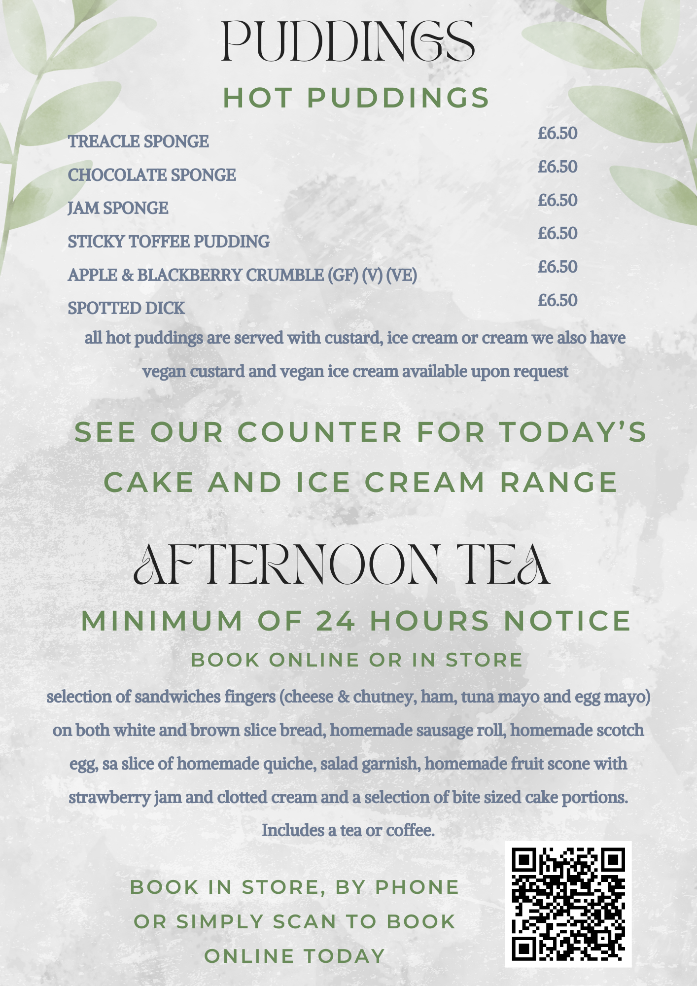 See below for our latest menu, we do also have a vegan, vegetarian and gluten free menu available upon request at the tills. We do not take bookings, simple come along and we will get you seated. Bookings are only taken for Afternoon Tea reservations.